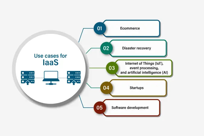 IaaS provides basic computing resources such as virtual servers, storage, and networking. Businesses retain control over operating systems and applications while avoiding the cost of physical infrastructure.