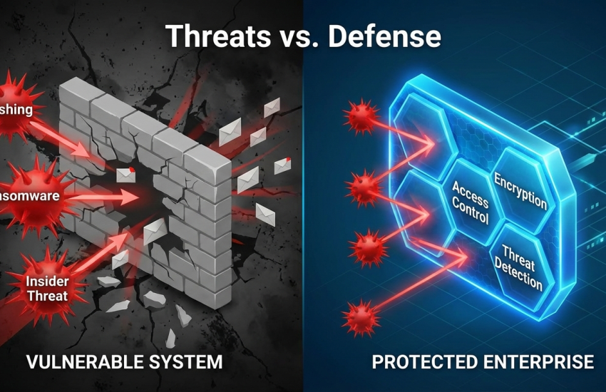 Cyber threats are becoming more sophisticated, targeting enterprises of all sizes. Phishing attacks, ransomware, insider threats, and system vulnerabilities expose sensitive data to unauthorized access.